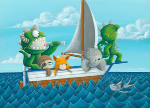 Inspired by Napoleoni’s award-winning children’s book Dragonboy, A Great Day to Discover captures the childlike wonder of friendship and exploration. With its vibrant palette and heartwarming characters, the giclée radiates love, laughter, and the joy of discovering the world with friends at your side.