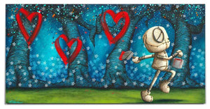 Napoleoni’s signature bold colors and expressive brushstrokes fill the scene with movement and warmth. The intricate textures of the forest add depth to the joyful composition, while the radiant red hearts highlight the enduring power of kindness and connection. Doing My Part is as immersive as it is uplifting—a timeless work that inspires with every glance.
