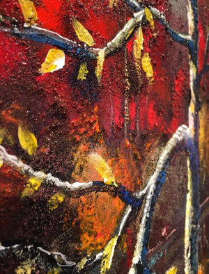 This is the kind of painting that changes a room. It doesn’t politely blend in; it sets the mood. Warm, romantic, slightly wild—like autumn at its absolute peak, frozen in time.