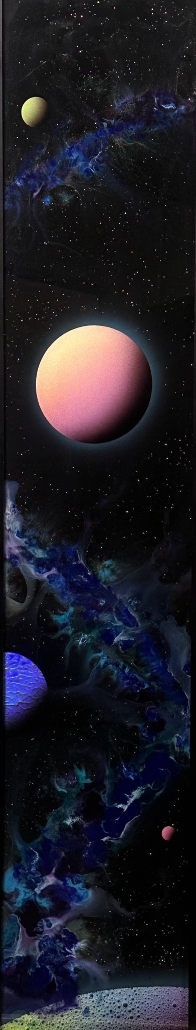 Few artists have captured the infinite wonder of space quite like Dave Archer. In Jacob’s Ladder, Archer transforms the cosmos into a symphony of color and light, using his groundbreaking technique of painting with plasma arcs on glass.