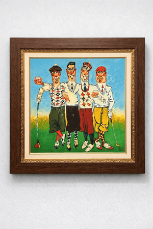 In FORE, Todd White brings his signature wit to the fairway, capturing a cheeky foursome mid-toast on the green. With argyle socks, vintage knickers, and glasses of whiskey raised high, these characters embody the spirit of camaraderie and mischief that makes every round memorable. Limited to just 35 pieces, FORE is a hole-in-one for collectors who appreciate humor, style, and a little swagger in their art.