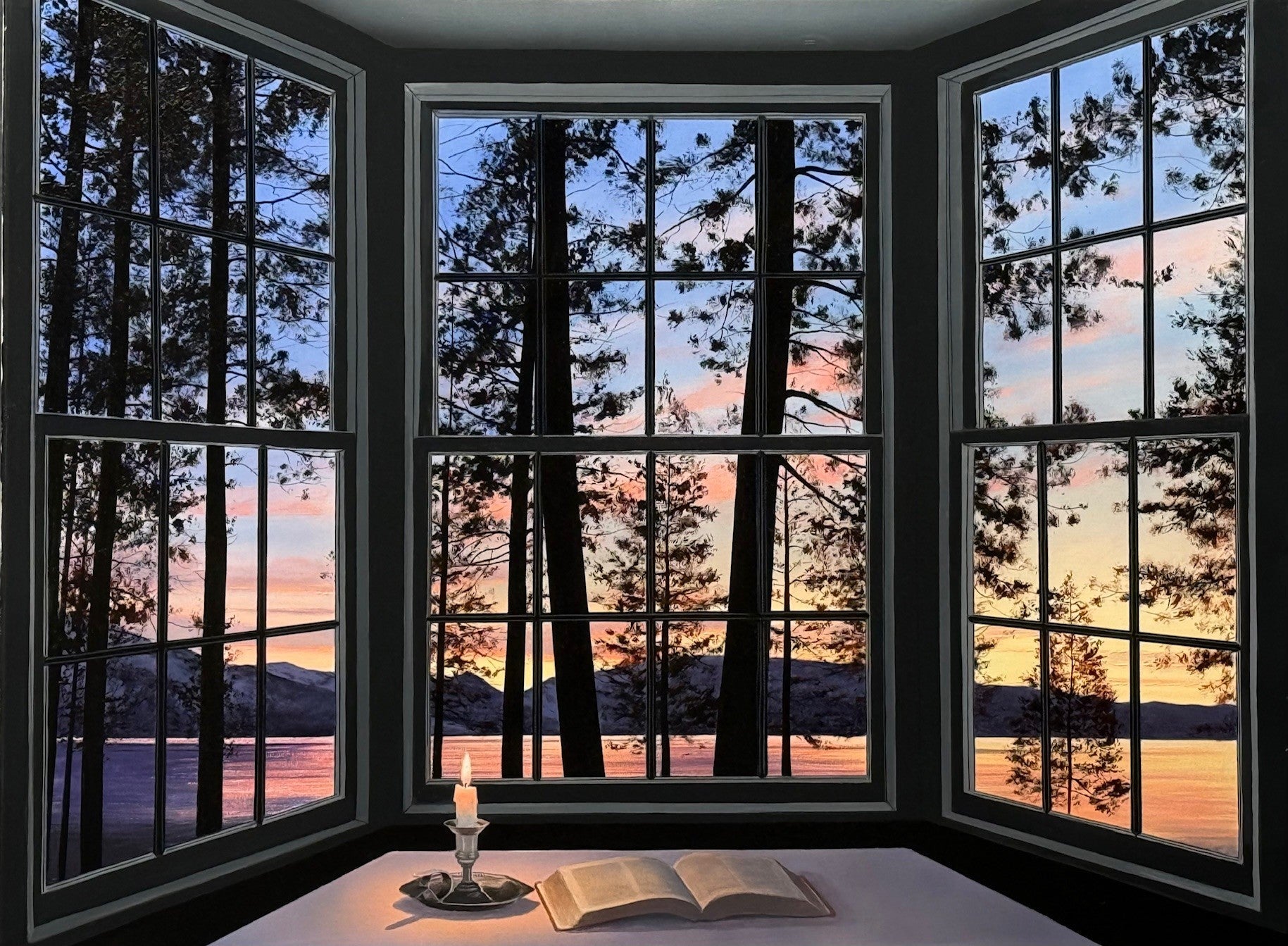 There’s something instantly familiar about this piece—the kind of view that makes you pause without knowing exactly why. Tahoe Twilight captures that quiet transition where the last light of day settles over the lake, and everything softens just enough to feel almost cinematic.